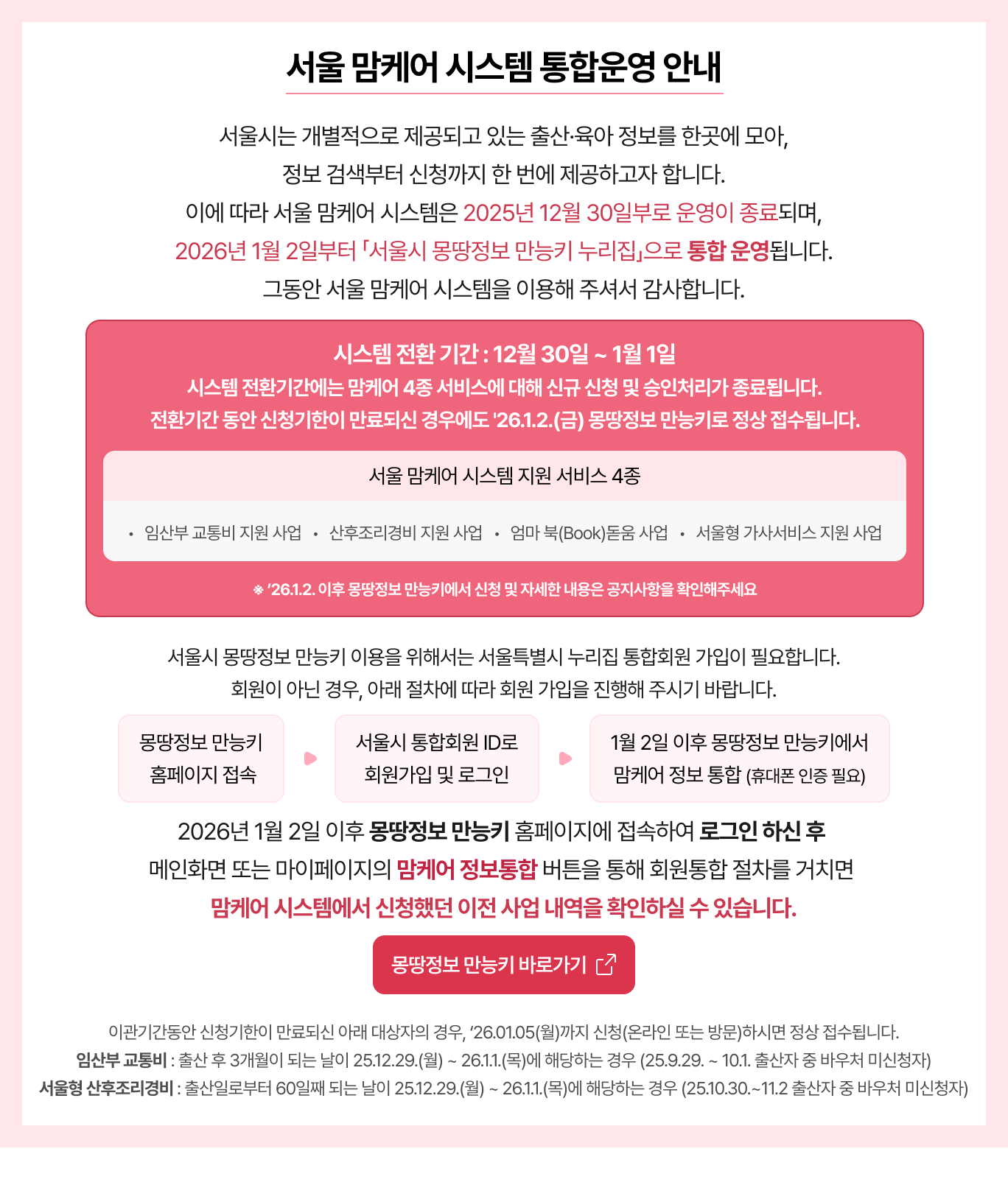 출산가정의 경제적 부담을 완화하고, 산모의 건강한 산후회복을 지원합니다.